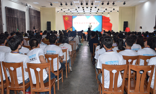 活动中,崔智林校长和田伏虎副书记首先为学生活动中心揭了牌。校团委书记李扬就活动中心前期的改造修缮、舞台灯光、音响等设施建设进行了汇报,并介绍了我校新成立的新青年传媒中心。校学生会主席王燚代表学生会、社联会、研究生会致了贺词,新青年传媒中心负责人黄芷君就“新青年”成立至今的活动、今后工作的方向进行了汇报。随后,宣传部部长韩琳和李扬书记共同为新青年传媒中心揭了牌。