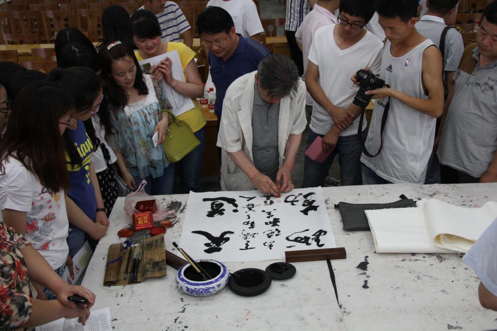 下午,刘小民院长一行在科研处和部分学院负责人的陪同下参观了“李岚清同志书法篆刻素描展”;当天晚上,刘小民院长专题报告会在学生活动中心举行,科研处副处长雷伟主持了报告会,我校部分书法教师、学生书画社、人文书画社全体社员及部分同学聆听了报告会。