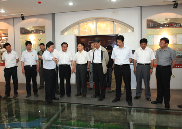 在校史陈列馆平面模型图前,姚引良书记和崔智林校长向陈宗兴一行介绍了我校的校区规划,以及拟在延安新区建设新校区等情况。参观中,陈宗兴一行仔细听取了工作人员的讲解,深入了解了延安大学的历史沿革、发展状况,了解了抗日战争、解放战争时期和恢复重建后延安大学的办学成就,以及部分优秀校友的生平和业绩。陈宗兴一行不仅听得认真,而且就我校的一些历史史实不断询问,兴味盎然。陈宗兴同志对我校很多新老校友的情况都非常熟悉,谈起来如数家珍,同时对我校长期形成的勤俭节约、艰苦奋斗、用延安精神办学育人的光荣传统和优良作风给予了高度评价。