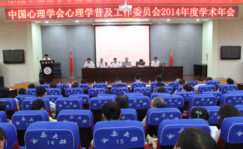 许静洪副校长首先在大会上致了辞。他在致辞中首先介绍了延安大学的历史沿革及发展现状,并希望与会各单位之间加强交流合作,共同提高高等教育教学水平。中国心理学会常务副秘书长梅建介绍了中国心理学会心理学普及工作委员会的发展历程和主要工作,以及学会自成立以来在心理学理论与知识的交流普及、心理学应用技术的实践推广等方面的工作和所取得的显著成绩。中国心理学会心理学普及工作委员会主任高文斌作了主题工作报告,并向延安市科技馆捐赠了一批心理科普展教设备。随后,大会对2014年度全国各行各业涌现出的科普工作先进个人和集体进行了表彰。
