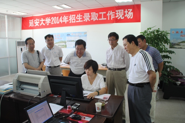 在网上招生现场,田伏虎副书记和胡俊生副校长等听取了今年学校整体招生的情况介绍,查阅了部分外省已经完成的招生情况,查看了我省二本各高校模拟投档情况。在派出所办公楼前,田伏虎副书记对大家为学校的安全所付出的劳动表示感谢,希望大家一如既往,加强值班巡逻,确保学校在暑期安全稳定。在体育场前,田伏虎副书记对后勤集团所有工作在一线的职工表示慰问,希望大家做好假期的各项工作,保障假期学校教职工的生活供给,做好各项维护维修工程,为下学期学校顺利开学做好准备。