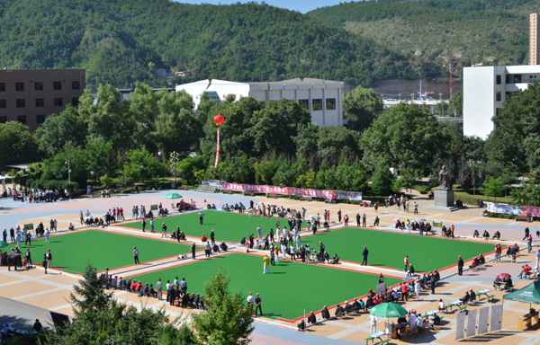 本网讯 今天上午,阳光明媚,秋高气爽,由延安市老年门球协会主办、我校承办的延安市(区)第五十八届“延大鸣鹤杯”中老年门球健身展示赛,在窑洞广场开幕。本届运动会执行主任、副校长许静洪,执行主任、市门协主席郭忠和,执行副主任、原副校长、校友总会副会长马海平,延安市老龄委办公室主任李景有、市老体协常务副主席吴锦铭,西安鸣鹤生命文化研究中心董事长、延安仙鹤岭公墓有限公司董事长宣永红,陕西美力源乳业陕北运营中心总经理马胜前,延安市老干局副局长、市老年大学校长赵荣山,延安市体育局副局长申长良,以及来自全市市直单位、各县(区)41支代表队的 400余人参加了开幕式。开幕式由我校离退处处长史和平主持。
