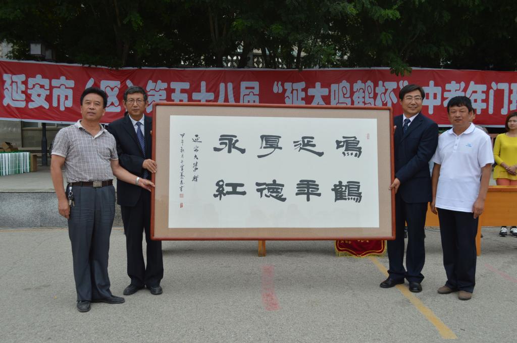 | 延安市老干局局长李得永为一等奖获奖队伍颁奖 |