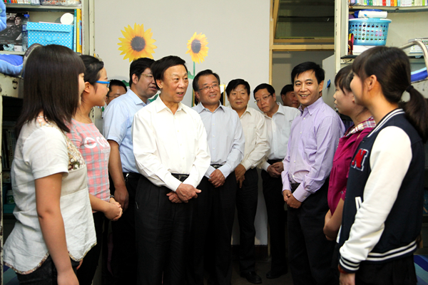参观结束后,孙清云副书记一行来到我校学生第一餐厅,听取了张威虎副校长的情况介绍,了解了学生餐厅的运行、饭菜价格和食品质量等情况。在学生4号公寓楼,孙清云副书记走进教育科学学院大二女生宿舍,与同学们进行了交谈,询问了她们的专业、生活、学习、就业前景等情况。听说她们都是学前教育专业学生,孙清云副书记说,这个专业十分重要,你们要好好学习专业知识,培养好祖国的下一代。