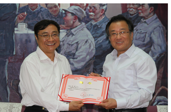 座谈结束后,崔智林校长向李捷社长颁发了聘书。接过聘书后,李捷社长说:“沉甸甸的聘书、终身的荣誉,我定不辱使命。”