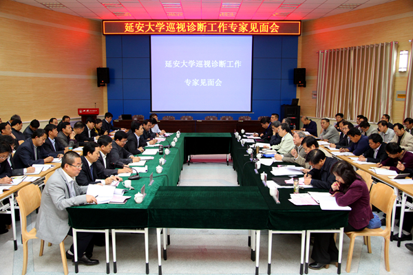 见面会进入第二阶段后,崔智林校长从基本情况、办学成效、存在的问题与对策、今后的发展思路四个方面,对我校的自查情况进行了说明。崔校长说,延安大学是中国共产党创办的第一所综合性大学,是新民主主义革命时期中国共产党高等教育实践的重大标志性成果,为抗日战争、解放战争的胜利和新中国的建设做出了卓越的贡献,为新中国高等教育体系的建立奠定了重要基础。建校70多年来,延安大学为国家培养输送了大批优秀人才,形成了用延安精神办学育人的优良传统,是延安精神的形成者、参与者和实践者,更是延安精神的继承者和弘扬者。延安大学发挥区位优势和资源优势,主动适应区域经济社会发展需要,打造特色学科专业,形成了延安十三年历史、延安精神、延安文艺、延安时期马克思主义中国化、陕甘宁边区史等研究方向,建成了中共党史资料中心,为党和国家在资政育人方面发挥了重要作用;发挥陕北历史文化资源优势,形成了陕北社会历史变迁、陕北民俗文化、陕北历史、陕北民间艺术、陕北方言等研究方向,是全国有影响的陕北历史文化研究中心;主动适应陕北油气、煤炭行业发展和区域生态环境恢复的需求,重点建设了化学工程与技术和生态学等特色学科,为解决陕北能源化工企业生产中的实际需求提供了重要的技术支持,为陕北红枣优质枣苗的研发和推广、区域生态环境的全面优化等做出了重要贡献;始终把人才培养作为根本任务,把教学工作作为中心工作,坚定地走以质量提升为核心的发展道路,人才培养质量稳步提升;制定了《延安大学教授、副教授为本科生上课暂行规定》等20多项质量保障实施办法,形成了有效的监控保障体系;坚持在贡献中求发展,科研在陕北经济社会发展中的贡献进一步凸显,服务地方医疗卫生事业发展的能力和水平大幅度提高;组建了泽东干部学院,大力推进延安精神教育培训;强化人才强校理念,教师队伍建设成效明显;拓展了办学空间,办学条件得到较大改善;加快推进学校治理机制和能力现代化,为高水平大学建设提供了坚强保障。