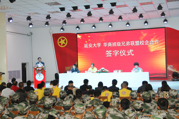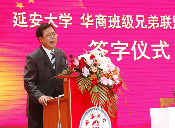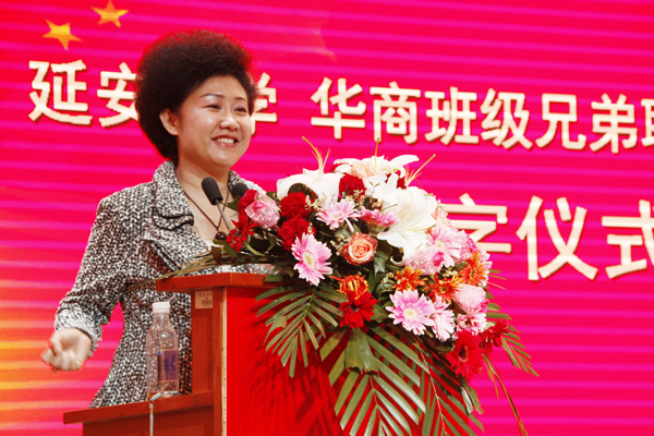 赵淑英主席在讲话中指出,这次华商班级兄弟联盟与延安大学签署了合作协议,合作协议的签署为华商班级兄弟联盟企业引进更多的优秀人才奠定了基础。赵淑英主席指出,延安大学有三个第一,一是毛泽东主席亲自命名,中国共产党创办的第一所综合性大学;二是延安大学是革命圣地的摇篮,政治觉悟第一;三是陕北的民情厚重,延安大学师生的情谊最真挚。赵淑英主席殷切希望延安大学的学子们珍惜在校的学习机会,脚踏实地,坚守梦想,在国家危难之际,挺身而出,为国家、社会和人民奉献自己的一腔热血;也希望延安大学的学子们努力弘扬延安精神,使红色文化永放光芒。