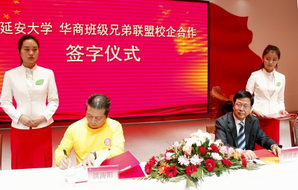 本网讯 今天上午,华商班级兄弟联盟与我校校企合作签字仪式在我校学生活动中心举行。我校党委副书记田伏虎,科研处处长王文强,学生处处长高峰,研究生处副处长付峰,党政办副主任解文元,华商班级兄弟联盟主席洪涛阳、执行主席赵淑英及华商班级兄弟联盟的企业家参加了签字仪式。签字仪式由我校团委书记李扬主持。