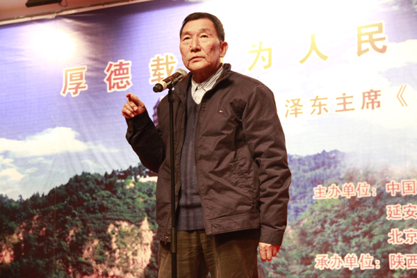 胡木英、张凤英、李东海、老兵代表安克文先后发表了感人肺腑的讲话。石小庆同志讲述了从父辈们跟前听来的张思德故事。讲述中,他几度哽咽。毛泽东同志的亲属代表曹宏,为大家讲述了毛泽东用“为人民服务”思想教育家人的3个故事。