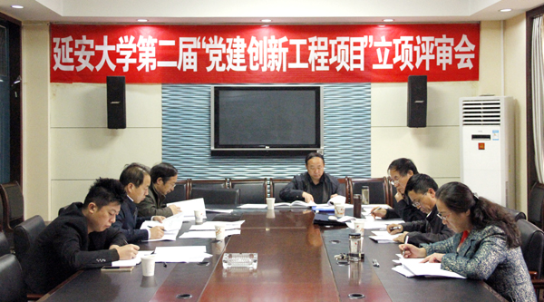 本网讯 10月17日上午,我校在逸夫楼第三会议室举行了第二届基层党建创新工程项目立项评审会。校党委委员薛美玲、计算机学院处级调研员白万洲、文学院处级调研员赵维森、政法学院教授高九江、研究生处副处长付峰、校党委组织部副部长、党校副校长拓宏伟、延安大学附属党办副主任聂鑫等担任评审成员。立项评审会由组织部副部长拓宏伟主持。
