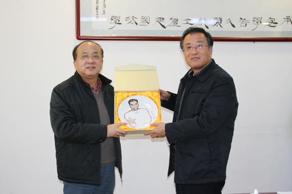 座谈结束后,崔智林校长向临沂大学考察团赠送了独具我校特色的纪念品。