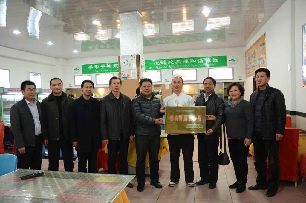 座谈会后,杨义民书记与王顺书记共同为我校清真餐厅颁发了“清真食品放心店”牌匾。今年11月初,我校清真餐厅被延安市民族宗教事务局、延安市食品药品监督管理局、延安市伊斯兰教协会筹委会共同评为“清真食品放心店”。