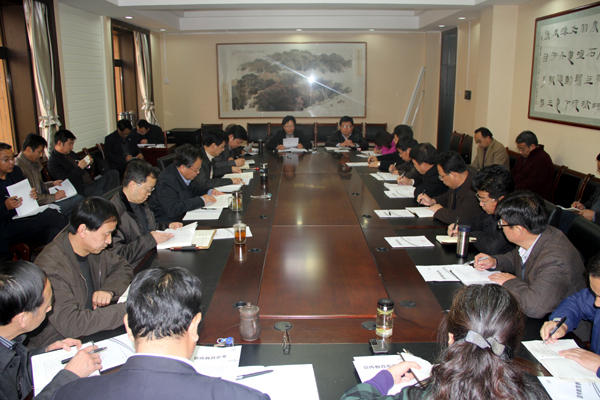 本网讯 11月19日下午,我校党委中心组学习十八届四中全会精神(扩大)会议在我校逸夫楼第三会议室召开,校党委中心组成员和各学院党委书记参加了会议。会议由党委书记王亚杰同志主持。