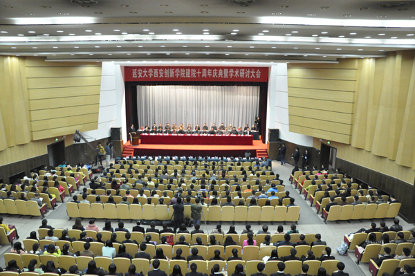 西安创新学院院长姚正宽在致辞中回顾了学院10年发展历程之后指出,学院始终坚持依靠延安精神和延大传统办学治校,自立更生,艰苦创业,从无到有,从小到大,逐步成长为陕西独立学院的一支重要力量;坚持探索构建现代大学治理结构,三次股权重组,建立起规范的董事长领导下的院长负责制,形成了董事会决策、院行政实施教育教学管理、院党委发挥政治保障作用、院教学工作委员会体现教授治校的有效管理体制;始终坚持打造一支过硬的教师队伍,通过制定高层次人才引进与稳定计划、教师后续教育提升计划,不断推进队伍教学科研能力建设;始终坚持深化对应用性人才培养的不懈探索,形成了通识教育与实验、实习、实训相结合,具有职业导向的人才培养模式。谈及学院未来发展,姚正宽院长表示,到十三五末,要力争把西安创新学院建设成为一所办学特色鲜明、适应性强、开放化程度高、有特色的独立学院,为陕西教育做出更大贡献。