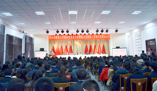 本网讯 今天下午,我校共青团延安大学第四次代表大会暨延安大学第二十次学生代表大会闭幕式在学生活动中心举行,校党委副书记田伏虎,我校相关职能部门负责人和各学院主管团、学工作的领导,以及128名团代会正式代表和159名学代会正式代表参加了闭幕式。闭幕式由石油学院团委书记白加栋主持。
