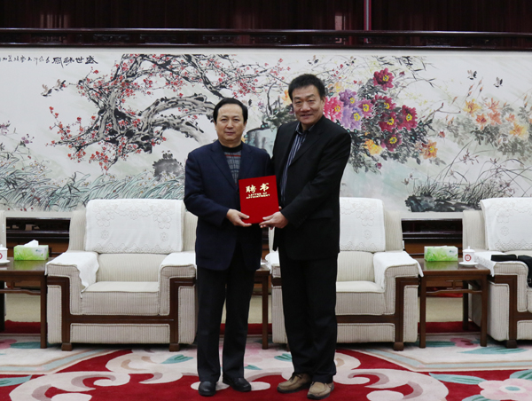 | 临沂大学校长杨波向胡俊生副校长颁发兼职教授聘书 |