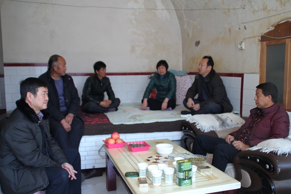 白泽生主席一行到扶贫点村后,与马家砭镇党委副书记史永玲,界石堡党支部、村委员干部进行了座谈,详细了解了村上一年来产业发展及村民的收入情况。白泽生主席对村上2014年所做的工作和取得的成绩表示肯定和祝贺,就过去一年所开展的“两联一包”工作进行了回顾总结,对做好下一步村容村貌、文化设施建设、医疗、教育上扶贫等工作提了建议和设想。镇、村领导对我校一年来所做的帮扶工作以及在春节前夕专程来到村上落实帮扶任务、捐赠并慰问村民表示感谢,同时也表示不辜负延安大学的帮扶信任,全力做好相关工作。