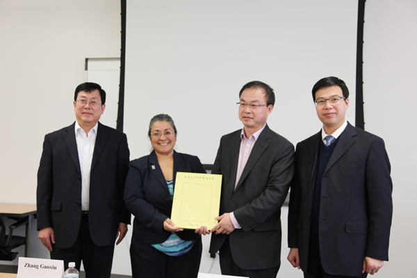 | 代表团向加州州立理工大学波莫纳分校赠送纪念品 |