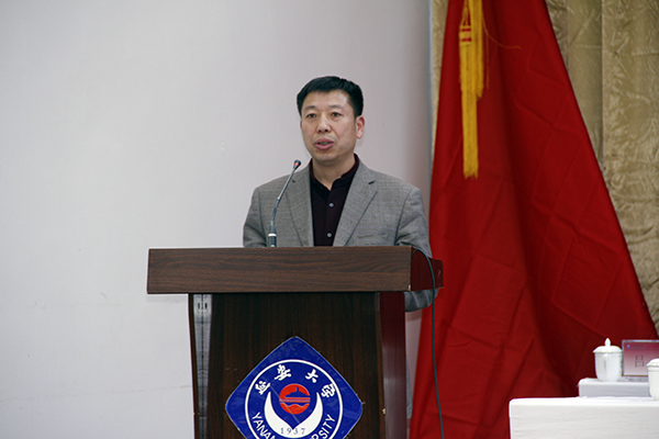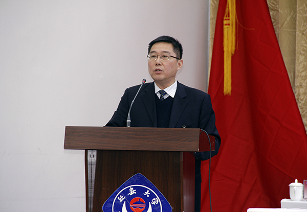 | 杜红荣处长代表许静洪副校长宣读所分管部门的重点工作 |