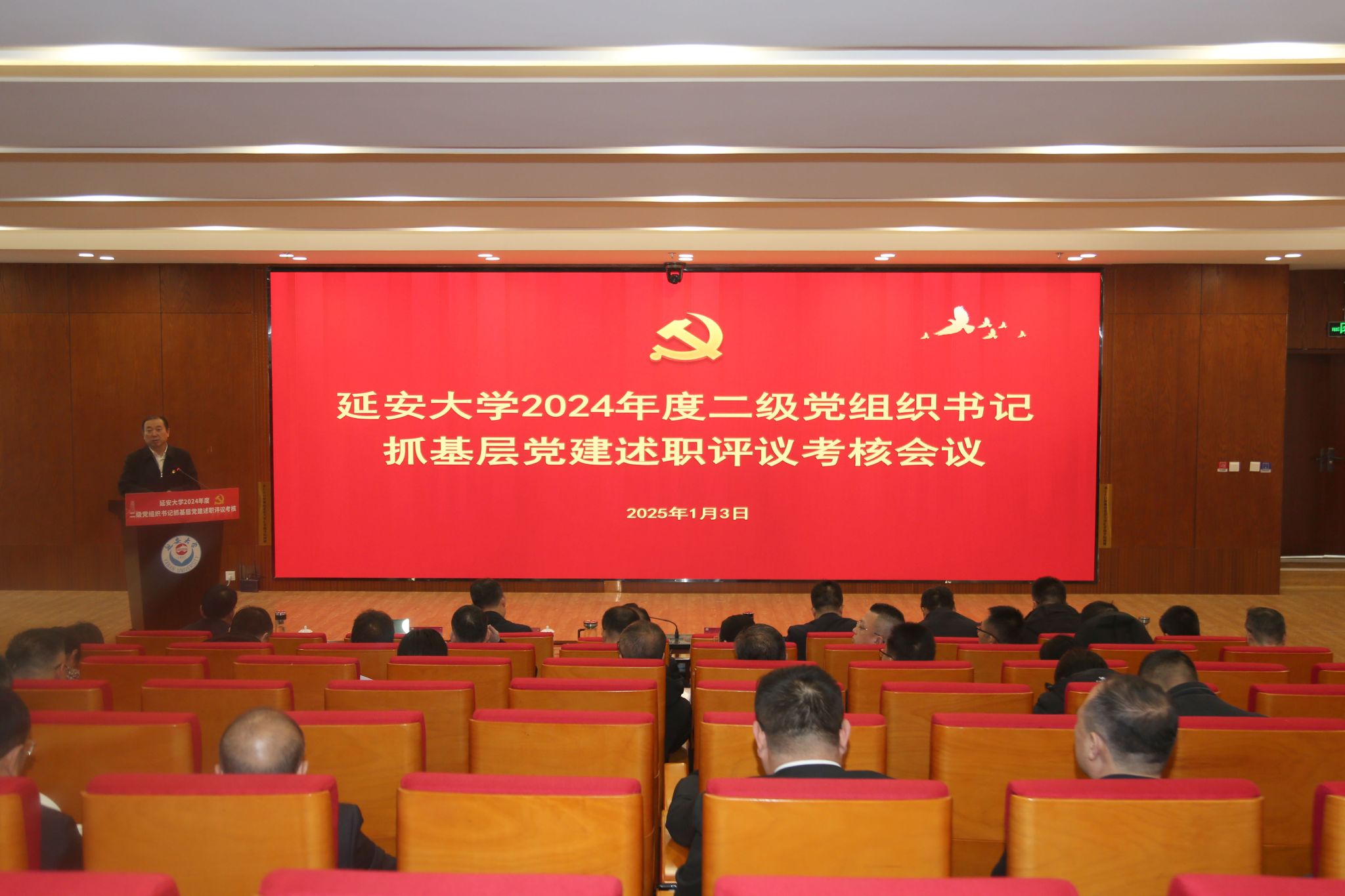 本网讯 1月3日上午,我校在新城校区行政楼一楼报告厅举行了2024年度二级党组织书记抓基层党建述职评议考核会议。校党委书记高子伟出席会议并作点评讲话,在校校领导,党委工作部门有关负责同志,21位二级党组织书记、政协委员、人大代表、民主党派代表、无党派人士代表等参加了会议;各学院院长、附属医院院长、延安精神强党建示范党组织负责同志、“双带头人”教师党支部书记工作室负责同志、各学院党委组织员等列席了会议。会议由校长奚家米主持。