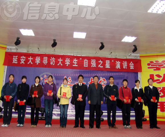 作者:李晓峰 稿源:学生处 发稿时间:2006年11月30日 本网讯:11月27日,由学生处主办的“延安大学寻访大学生自强之星”演讲会在学生活动中心举行,来自13个学院的17名学生用朴实的语言讲述了自己在成长经历中困难面前积极进取、拼搏奋进的感人事迹。