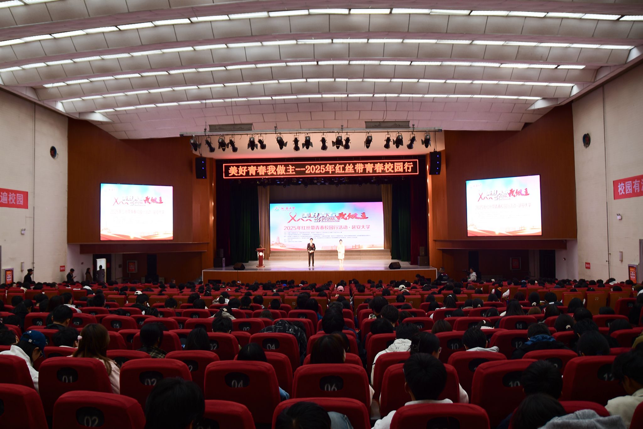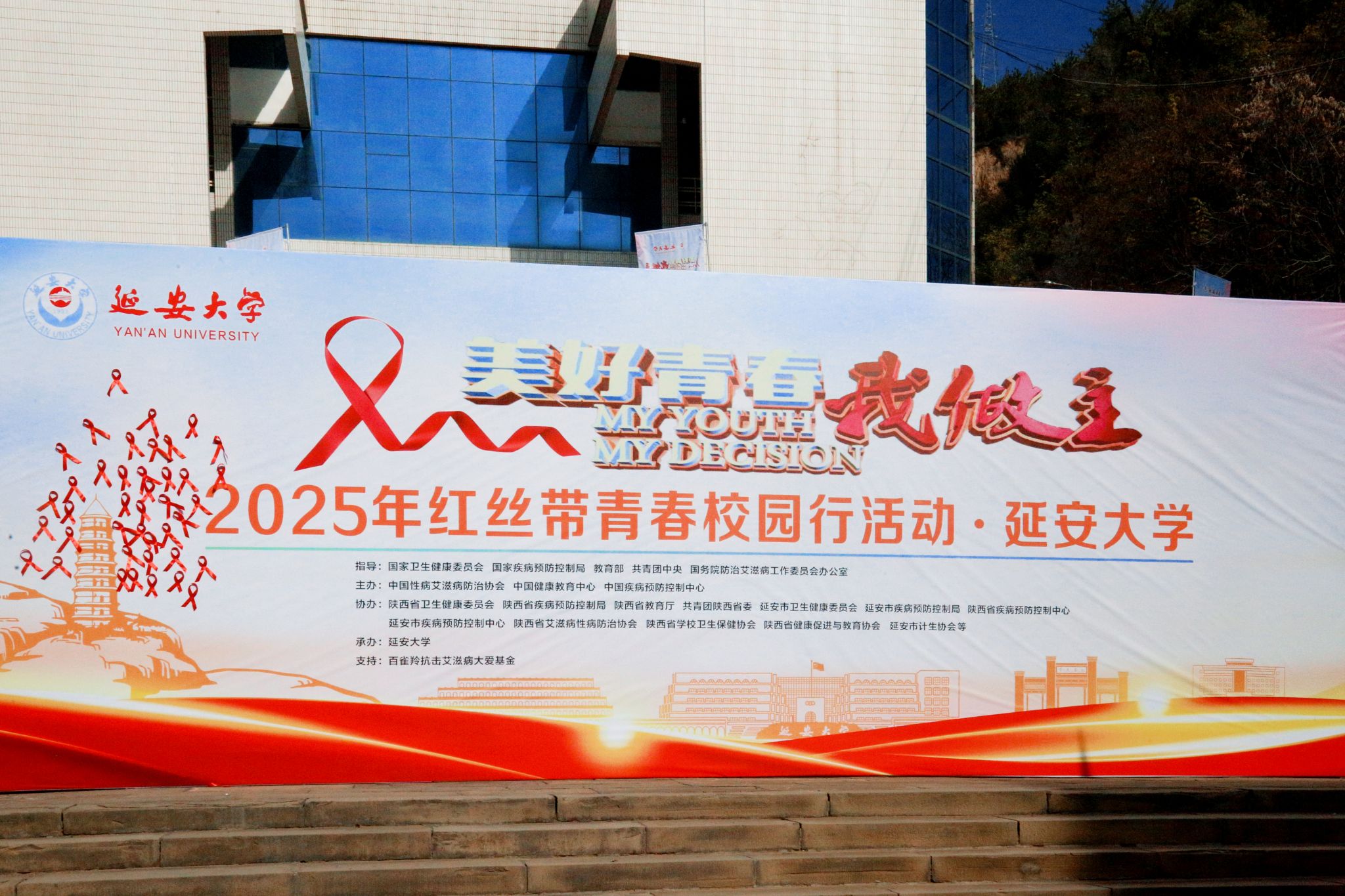 本网讯 11月11日,“美好青春我做主”2025年红丝带青春校园行走进延安大学活动在我校杨家岭校区隆重举行。中国性病艾滋病防治协会副会长、中国疾病预防控制中心艾滋病防治首席专家韩孟杰,陕西省卫生健康委二级巡视员张宇峰,延安市政府副秘书长曹渊博,我校副校长李杨出席活动并致辞。