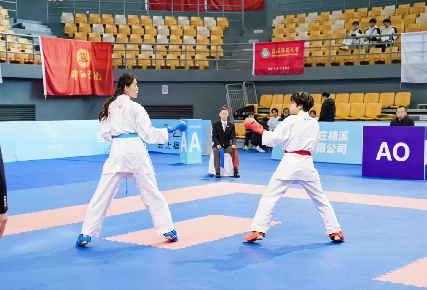 本网讯 11月28日,第13届中国大学生空手道锦标赛在浙江省温州市永嘉体育馆落幕。本届赛事汇聚全国77所高校的500余名运动员同台竞技,参赛规模居历届前列。我校体育学院教师高雪岩被大赛特聘为副裁判长兼申诉委员。