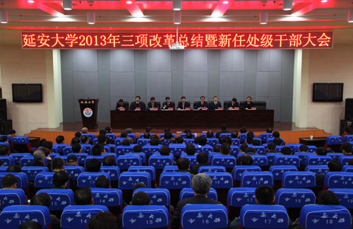 会上,党委副书记、校长崔智林从改革的基本情况、改革工作中呈现的特点和改革的成效等方面介绍了学校这次三项改革的总体情况,说明了改革的重要意义。这次我校的机构、学科专业调整与干部聘任制度改革形成过程分为酝酿和起草、征求意见和改革实施三个阶段。改革工作呈现了三个方面的特点:一是党委精心谋划、科学设计,保证了改革工作的方向性;二是广大师生充分理解、大力支持,保证了改革工作顺利完成;三是组织严密、监督有力,保证了改革工作的严肃性。通过改革,实现了机构精简,建立健全了干部培养、选拔制度,实行了干部任期制、轮岗制,实现了院系学科专业设置的优化。崔校长指出,延安大学面临着新一轮的机遇与挑战,特别是在建设高水平大学与增强核心竞争力方面的形势和任务相当严峻和艰巨。他希望大家弘扬延安精神,践行群众路线,求真务实,开拓创新,扎实工作,以“延大人”的情怀奉献“延大人”的力量,为实现延安大学的美好未来努力奋斗。