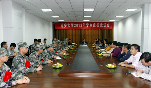 欢送会上,武装部李志福同志宣读了《延安市宝塔区武装部征兵入伍通知》,今年我校共有王刚等12名男大学生应征入伍。
