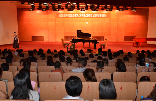 本网讯 由陕西省音乐家协会、延安文学艺术界联合会、延安市艺术家协会和榆林市音乐家协会主办,我校鲁迅艺术学院和延安英美琴行承办,西安音乐学院钢琴系和海伦钢琴股份有限公司协办的,2013首届延安国际钢琴艺术节开幕式暨赈灾义演双钢琴音乐会于8月10日晚在我校5·23音乐厅举行。陕西省音乐家协会秘书长郑永利,延安市人大教科文卫组织主任陆炜、延安市民政局局长任新谱、延安市文联办公室主任李真翔、延安市音乐家协会主席杨占荣、我校鲁迅艺术学院部分师生,以及延安市部分钢琴爱好者近500人参加了开幕式。开幕式由本届钢琴艺术节组委会办公室主任文星林主持。