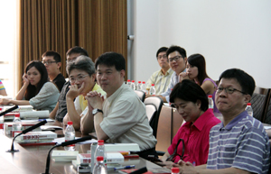 本网讯 8月19日上午,我校港澳台事务办公室在图书馆二楼会议室,与来延参加访问的台湾东华大学华文系20余名师生进行了热烈而活泼的文学交流座谈活动。座谈会由我校港澳台事务办公室主任吴卫东主持,胡俊生副校长代表学校致了欢迎词,并向东华大学华文系赠送了纪念品。