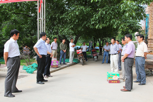 本网讯 7月29日下午,张威虎副校长和工会副主席白泽生、徐宁等,分别看望并慰问了我校保卫处、房产处和后勤处等部门坚守在防汛抢险救灾第一线的教职工。