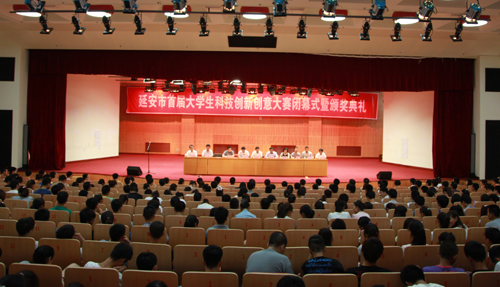 本网讯 7月2日下午,延安市首届大学生科技创新创意大赛闭幕式暨颁奖典礼在我校5·23音乐厅举行,我校副校长许静洪,大赛组委会名誉主任、延安市科技局局长刘宝霖,市知识产权办主任马晓旭等应邀出席,以及我校学生处、研究生学院、团委和相关学院的负责人、教师及获奖师生,参加了闭幕式暨颁奖典礼。典礼由大赛组委会副主任、我校科技处处长王文强主持。