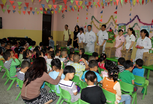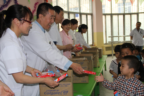 活动中,附属医院口腔科主任艾延安、副主任石新华,牙防中心主任李凤莲和正畸科主任杜凯延等医师,先后为幼儿园137名儿童检查了口腔情况,并通过挂图讲解的方式向小朋友们讲授了正确刷牙的方法以及预防口腔疾病的重要性。通过检查,医师们认为,附属幼儿园儿童整体口腔卫生状况良好。检查结束后,医务人员向幼儿园的儿童赠送了牙膏和牙刷,鼓励小朋友们爱护牙齿,从小养成良好的卫生习惯。