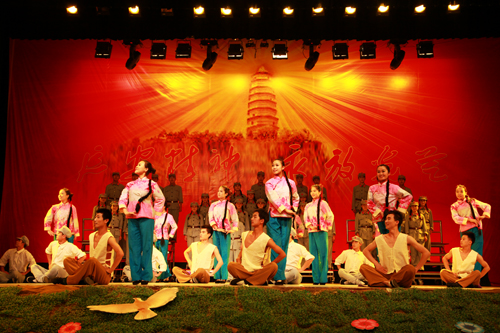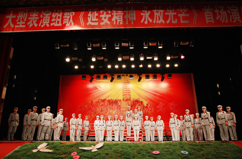 本网讯 6月14日晚,由陕西省延安精神研究会和我校主办,我校鲁迅艺术学院承办的“延安精神永放光芒”《延安组歌》情景音乐会在我校大礼堂举行。陕西省延安精神研究会会长白云腾,我校党委副书记田伏虎,党委委员、组织部部长薛美玲,以及参加“弘扬延安精神,改进工作作风,密切党和群众血肉联系”理论研讨会的专家和学者,与我校1000余名师生共同观看了演出。
