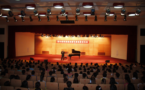 音乐会上,廖先冀以他精湛的技艺、极富感染力的演奏,让每位师生大饱耳福,手指轻松自如地在琴键上灵活弹奏,美妙的天籁旋律如行云流水般从指尖倾泄。他连续弹奏了莫扎特的《D大调钢琴奏鸣曲K311》、斯特拉文斯基的《彼得鲁斯卡》、李斯特的《唐璜的回忆》等曲目。廖先冀的演奏时而温柔细腻时而激情四溢,使在场每一位师生随着琴键的起伏,沉浸在演奏者的纯熟演绎中,娴熟而充满激情的演奏深深地打动了在场的师生。音乐会尾声,在师生们经久不息的掌声中,廖先冀加演了罗西尼的《快给大忙人让路》,把现场气氛推向了高潮。