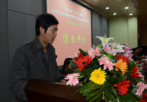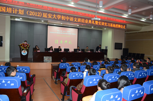典礼上,胡俊生副校长致了辞。我校教师培训中心主任、教科院院长闫世笙从培训内容和方式、培训特色、经验反思等方面,对这次培训工作进行了详细总结。实训基地学校代表、延安市军分区幼儿园园长刘晓丽,学员代表程章军和刘兴聪先后发了言。随后,闫世笙院长宣读了陕西省教育厅关于实习实训基地的文件。胡俊生副校长分别为延安市实验中学、延安大学附属中学、延安市洛杉矶保育院和延安市军分区幼儿园授了牌。闫世笙院长宣读了延安大学关于(2012)初中语文班结业的决定和学员课件制作大赛、讲课比赛获奖名单,在主席台就座的领导为获奖学员颁了奖。