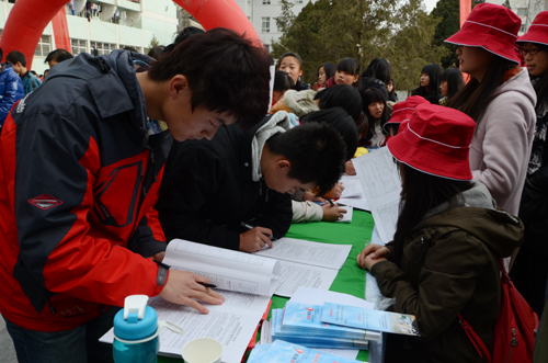 刘海宽局长结合无偿献血这份公益事业和民生工程的重要意义,希望延大师生积极参与无偿献血活动,展现圣地高校师生文明、健康、乐于奉献的良好风貌。同时,他表示政府部门也会广泛关注和大力支持,制定相关规范机制,使得献血活动保持快速发展的良好势头。学生代表、文学院2012级的王大双在发言中表示:无偿献血,献出的是血液,送出的是爱心,拯救的是生命,感受的是快乐。在奉献中充实生命,在奉献中实现人生价值。王大双用朴实的语言道出了爱心的真谛。随后,许静洪副校长宣布“贯彻十八大精神、践行宗旨意识” 延安大学千名学子无偿献血活动正式开始,同学们积极咨询、踊跃报名、认真填表,参与到献血的行列中。