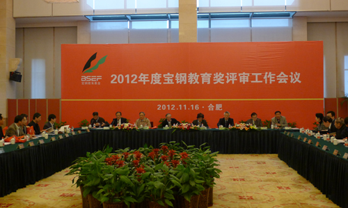 本网讯 11月16日至20日,2012年度宝钢教育奖评审会议在安徽合肥举行。宝钢教育奖评审工作委员会主任委员杨叔子,副主任委员马钦荣、崔宝璐、樊纯诗,安徽大学党委书记黄德宽等71位评审委员出席了会议。会议由副主任委员杨家庆主持。我校副校长胡俊生和教务处处长武忠远应邀先后参加了宝钢优秀教师奖和优秀学生奖的评审工作会议。