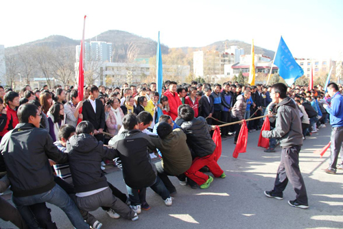 本网讯 11月16日至18日,我校学生会在窑洞广场举办了2012年学生冬季拔河比赛,来自16个学院的32支代表队参加了比赛。