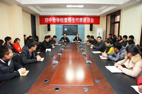 举行师生代表座谈会,一直以来是学校听取教师和学生意见、了解教风和学风、提高教学质量和水平的有效途径,为师生与教学和管理部门之间搭建了沟通的平台,拉近了双方之间的距离,为不断改进学校教学管理和后勤服务水平,深化教学改革、提高教学质量起到了积极的促进作用。