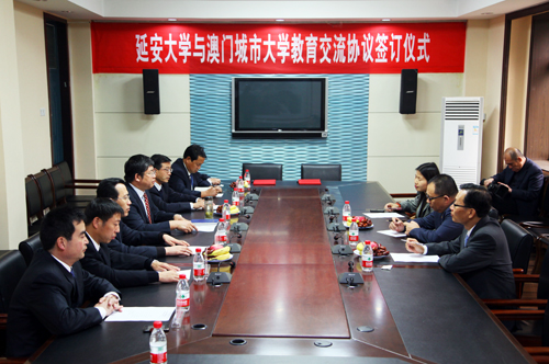 本网讯 今天下午3点,我校与澳门城市大学教育交流协议签订仪式在我校逸夫楼第三会议室举行。我校副校长张威虎,澳门城市大学副校长邢文祥、总监助理徐艳萍、教务处处长洪光华,我校教务处处长武忠远、学生处处长韩卿元、人事处处长杜红荣、研究生学院副院长付峰、国际处副处长杨向宏等参加了仪式。签订仪式由我校国际文化交流学院院长吴卫东主持。