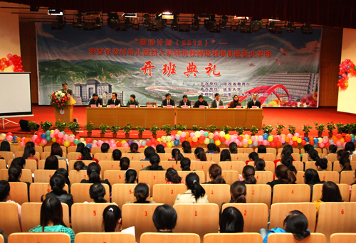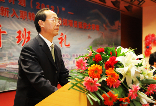 许静洪副校长在开班典礼上致了辞。他在致辞中指出,举办这次农村幼儿园新入职转岗教师培训班,必将进一步加强我校与陕西省教育厅和延安市的合作,更好地整合并充分利用我校优质的教育资源,充分发挥我校教师教育专业的资源优势,提高参加培训教师的教育教学能力和专业化水平,更好地发挥参加培训教师在实施素质教育、推进教育改革和教师培训中的骨干带头作用。他希望各位学员们能够充分认识到“国培计划”的重要意义,珍惜本次研修机会,以积极的态度和饱满的热情投入到学习中,认真全面地完成各项培训任务,不断提高自身业务水平,为陕西学前教育的改革与发展做出更大的贡献。随后,罗昆山副主任和韩志强副局长先后讲了话,对学员们提出了殷切希望。
