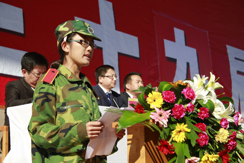 军训学员代表发言。 高嵩/摄