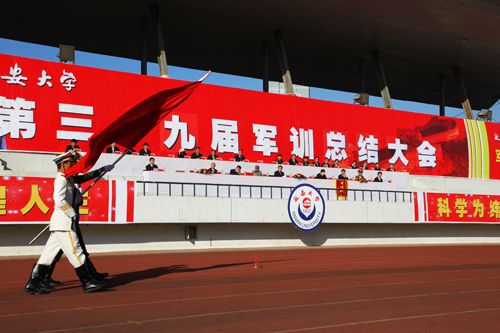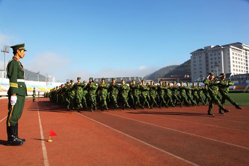 首先进行的是军训汇报表演。党委副书记、校长崔智林在军训团团长、解放军边防学院教研部上校张逆峙和军训团政委、校武装部部长王延海的陪同下,检阅了参训学生方队。随后,参训学员进行了分列式表演,以及女子擒敌拳、警棍术、防灾演练、军体拳、队列队形展示等。