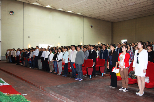本网讯 今天下午,我校2012级硕士研究生开学典礼在校大礼堂举行,校领导崔智林、王亚杰、许静洪、胡俊生,研究生学院全体工作人员,各培养单位主管研究生工作的院长、研究生秘书,硕士研究生导师代表、2012年新遴选的硕士研究生导师、高年级硕士研究生代表和2012级全体硕士研究生参加了典礼。典礼由副校长许静洪主持。