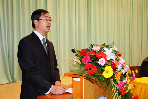 崔智林校长在致辞中希望2012级硕士研究生要尽快适应研究生生活,结合学校硕士研究生的培养目标,认真学习基础理论知识,积极参与导师的科研课题研究,参加技能训练和专业实践活动,培养专业兴趣;要端正治学态度,坚持求真务实,恪守学术道德,脚踏实地、严谨自律,坚决捍卫学术道德尊严,维护健康的学术环境;要把文化知识学习和思想品德修养紧密结合、创新思维和社会实践紧密结合、全面发展和个性发展紧密结合,在不断的学习中发展和完善自己的人生,成为理想远大,德才兼备,勇于创新的人才。