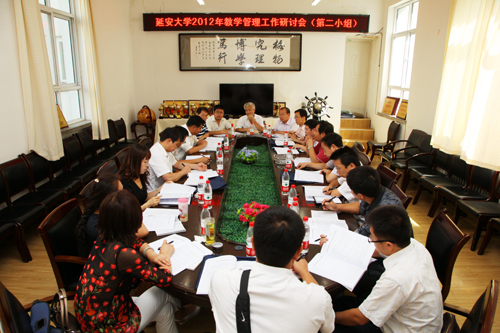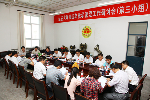 本网讯 今天下午,参加教学管理工作研讨会的代表分为4个小组,分别在能源学院会议室、信息学院会议室、化工学院会议室和生命科学学院会议室,就《延安大学本科学年学分制实施方案(2013版)(草拟稿)》、《延安大学学生管理规定(修订稿)》、《延安大学教学管理工作考核及奖励办法(征求意见稿)》、《延安大学教学单位教学管理年度考核指标(讨论稿)》、《延安大学本科毕业论文(设计)指导手册(修订稿)》、《延安大学本科毕业论文(设计)写作手册(修订稿)》进行了讨论。