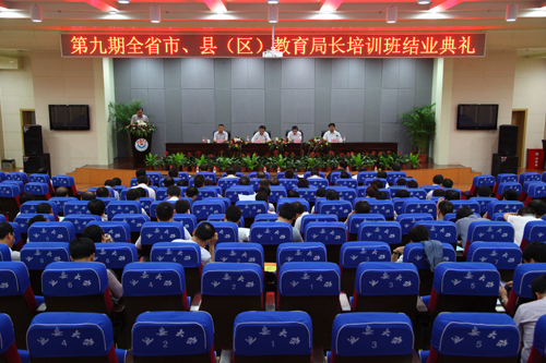 本网讯 今天上午,第九期全省市、县(区)教育局长培训班结业典礼在我校图书馆报告厅举行。中共陕西省委教育工委委员、省教育厅巡视员吕明凯、副巡视员王海波,我校副校长许静洪,中共陕西省委教育工委、省教育厅干部培训中心常务副主任张海青出席会议,第九期全省市、县(区)教育局长培训班领导小组成员,以及来自全省各市、县(区)的140余位教育局长参加了结业典礼。结业典礼由王海波副巡视员主持。