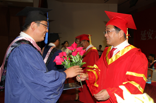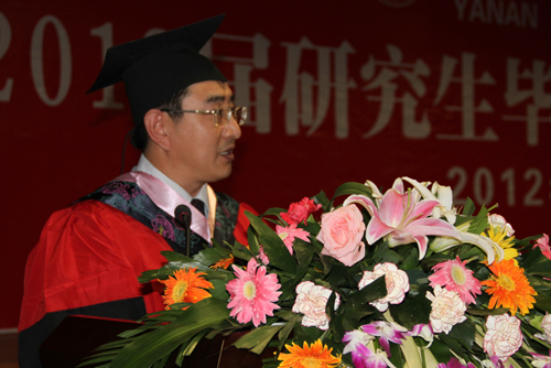 崔智林校长发表了热情洋溢的讲话。他向即将离开母校、踏入社会的毕业生们提出了两点希望:一是希望同学们永远做学术精神的守护者,继续发扬延大人“崇尚实践、乐于质朴”的务实精神,成于跬步,力戒浮躁,坚守“板凳宁坐十年冷,文章不写半句空”的学术准则,坚守学术精神,用真诚的智慧、诚实的劳动为社会做出实实在在的贡献;二是希望同学们永远做创新精神的实践者,树立终身学习的观念,保持和发扬“严谨、勤奋、求实、创新”的优良学风,摒弃浮躁,笃学不倦,勇于创新,知难而进,在未来的工作中做出更多富有创造性的贡献。